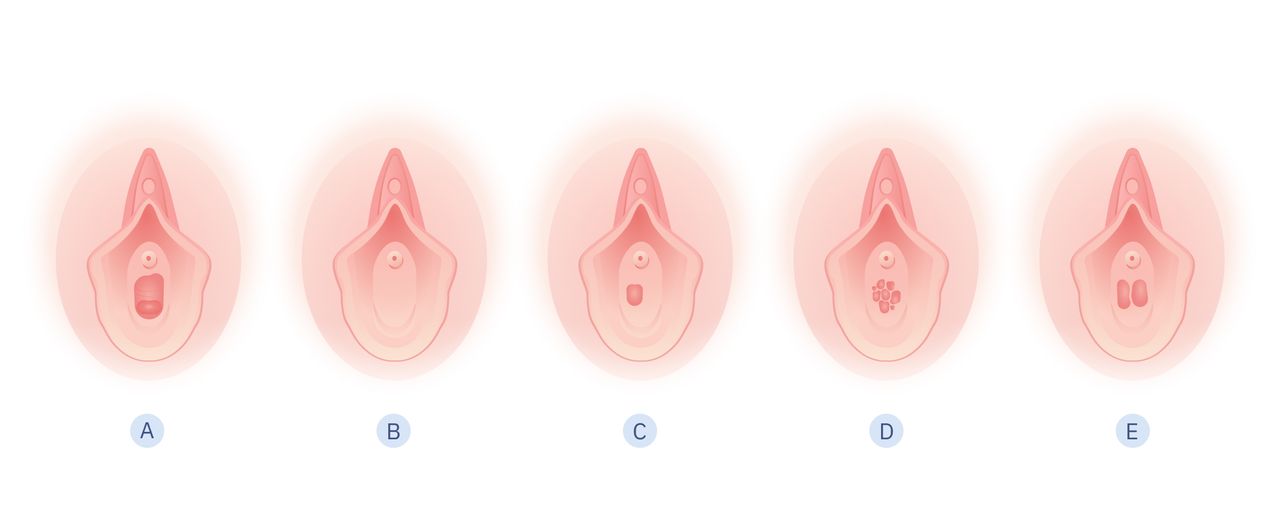 Существует несколько типов аномалий девственной плевы. Как они выглядят — показали на схеме, ниже рассказываем об особенностях каждого типа.